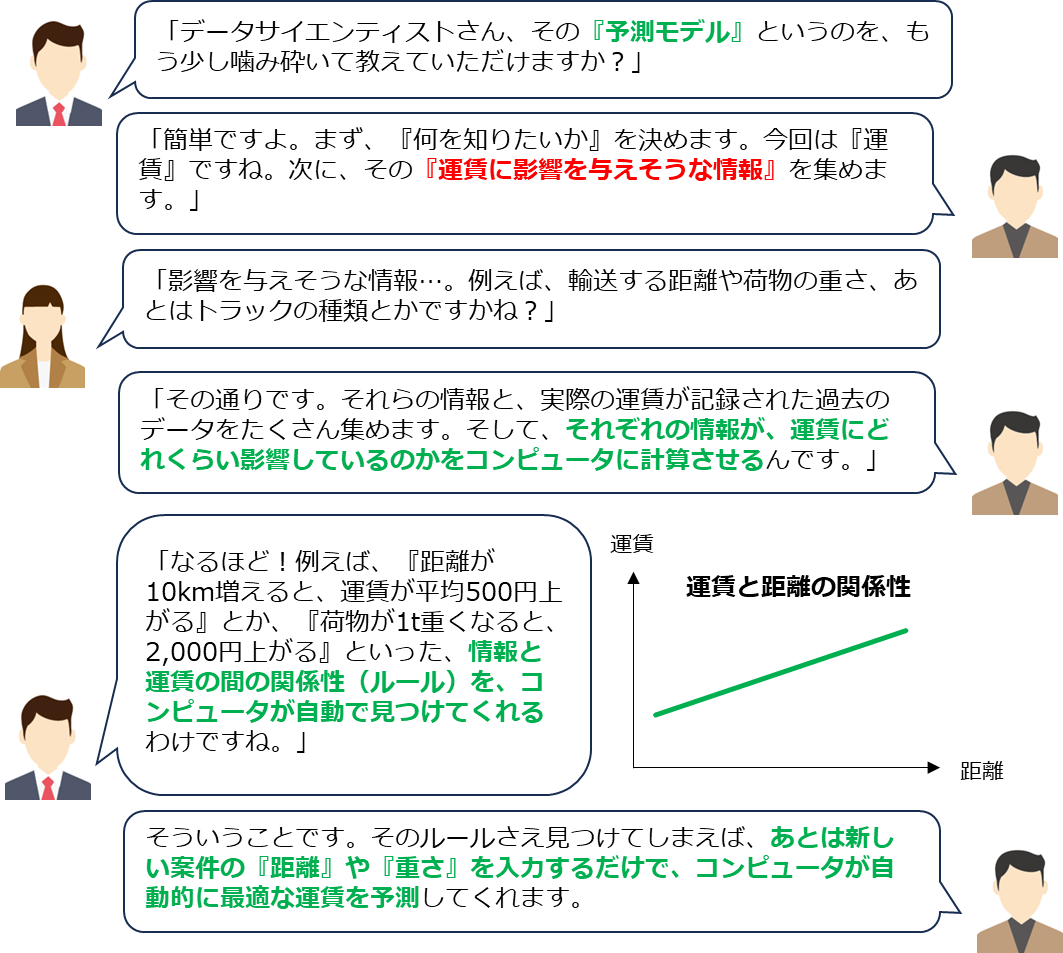 前回の「輸配送DX」出版のお知らせでは、コスト最小化を意識した輸送ルート決定業務の省力化についてご紹介しました。今回は、「輸配送DX」の書籍内でも取り組みやすいテーマの一つである、運賃推定モデルについて説明します。